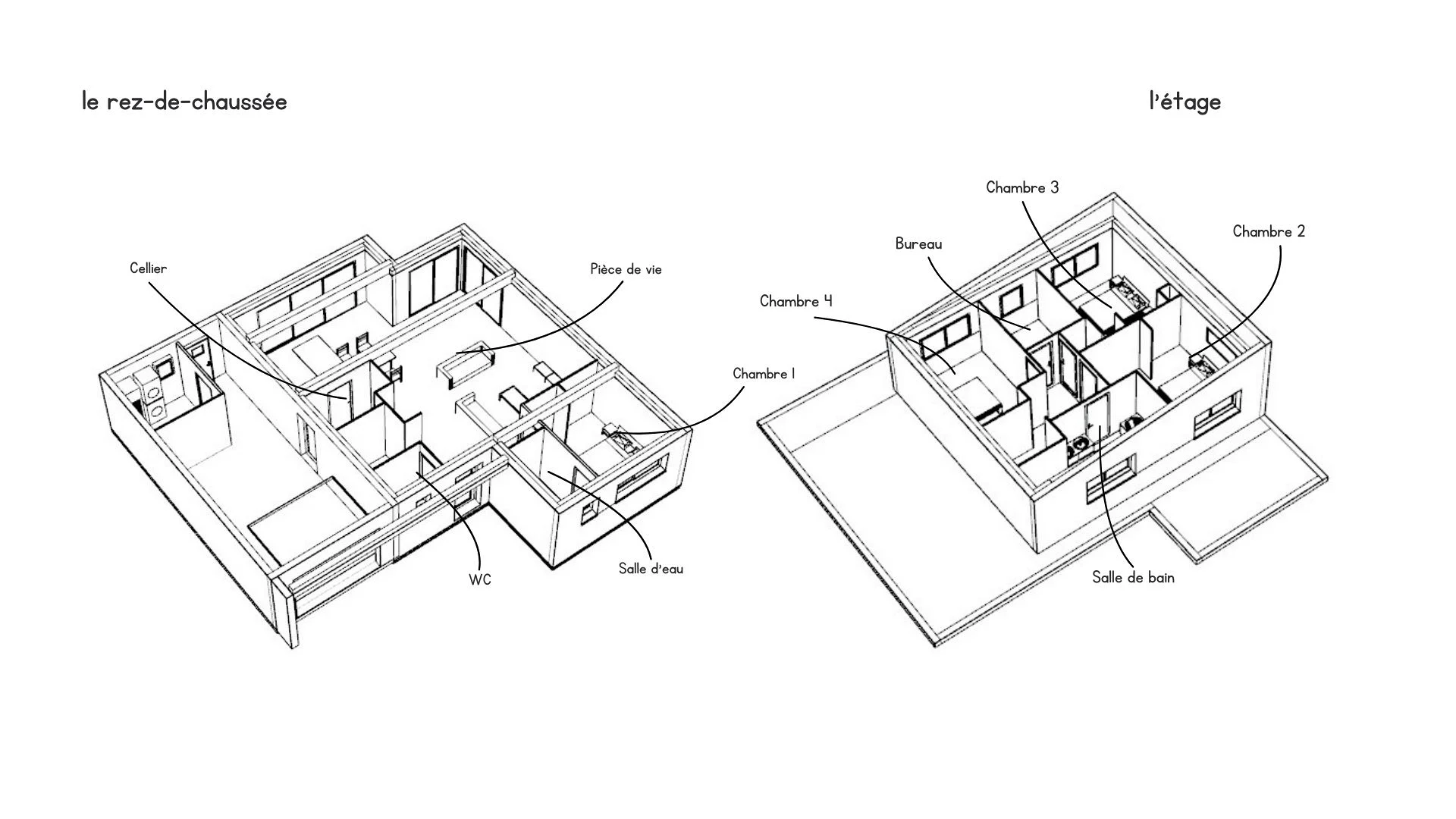 Proposée à partir de 235 000 €, elle se distingue par son architecture affirmée à toiture monopente, ses volumes généreux et sa grande pièce de vie lumineuse. Une chambre au rez-de-chaussée, un bureau à l’étage, deux salles d’eau et des équipements performants (ardoises naturelles, menuiseries aluminium, isolation renforcée, pompe à chaleur avec plancher chauffant) en font une maison durable, confortable et résolument contemporaine.