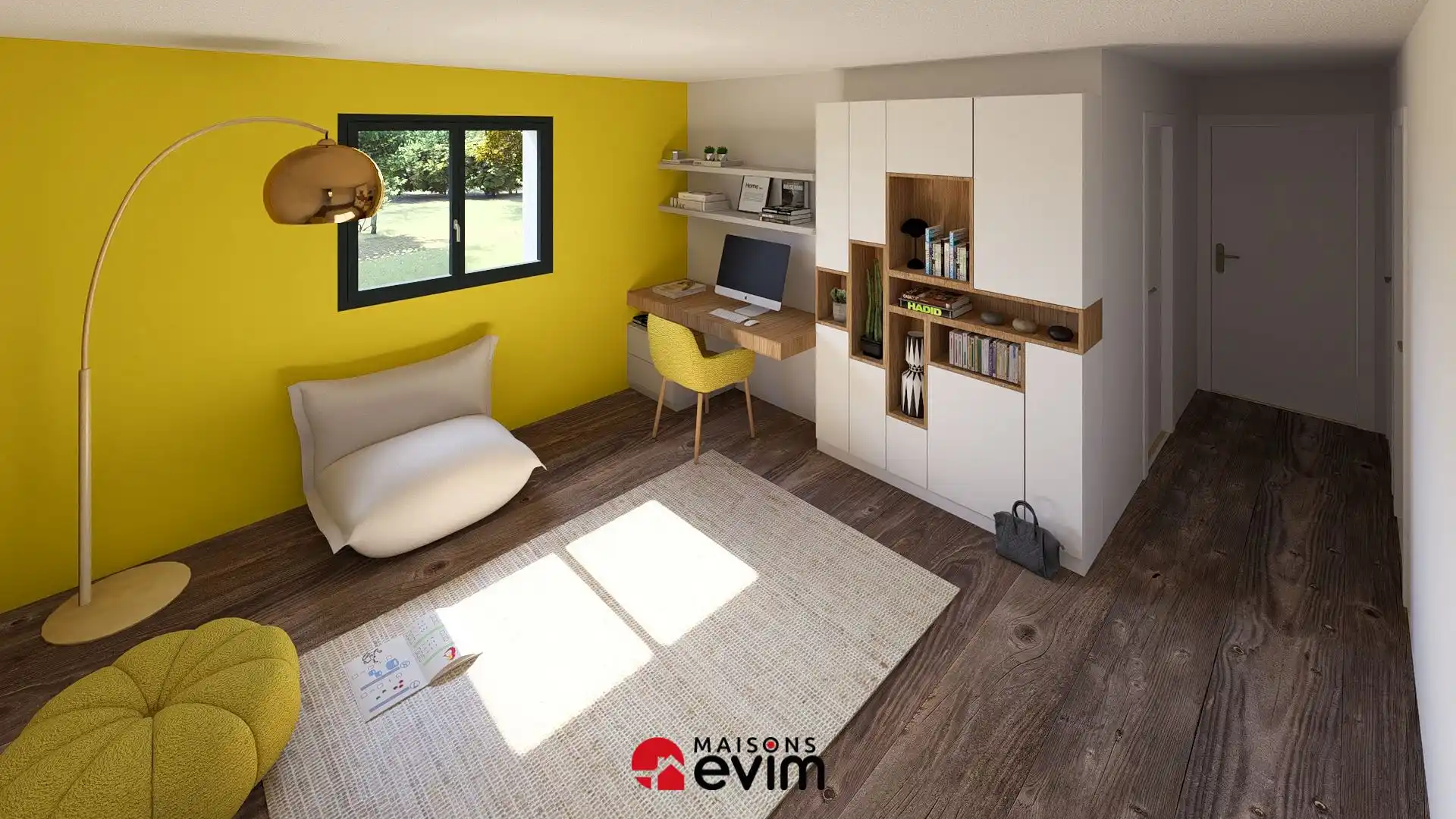SERENA affirme un style contemporain avec sa toiture mono pente et ses lignes épurées. Développant 77,53 m² de plain pied, elle propose trois chambres et une pièce de vie lumineuse pensée pour optimiser chaque espace. À partir de 140 000 €, elle intègre des prestations de qualité : ardoises naturelles, menuiseries aluminium, isolation performante et pompe à chaleur avec plancher chauffant. SERENA incarne une maison accessible, moderne et conçue pour offrir confort et durabilité au quotidien.